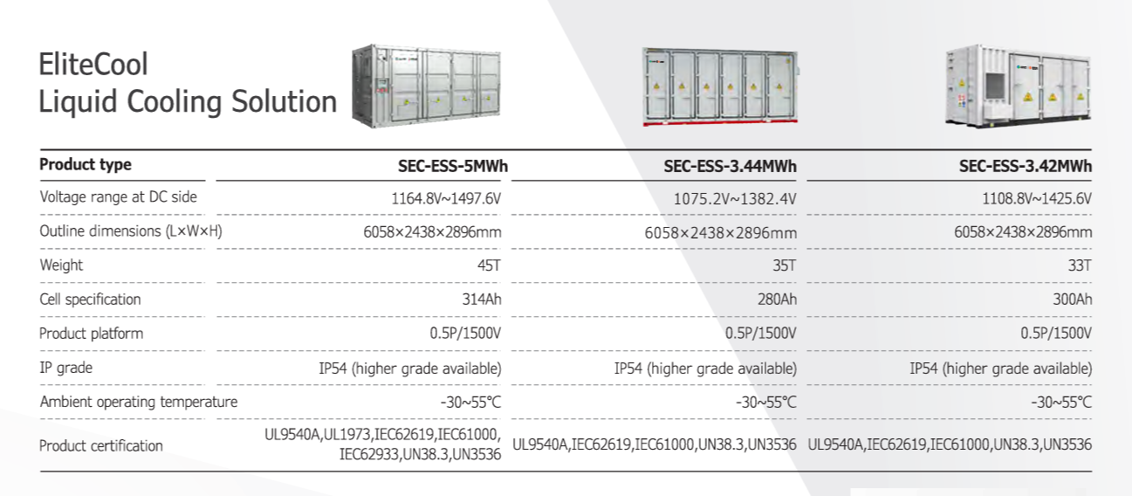 - Single container capacity 3.42MWh, 4.56MWh, 5MWh