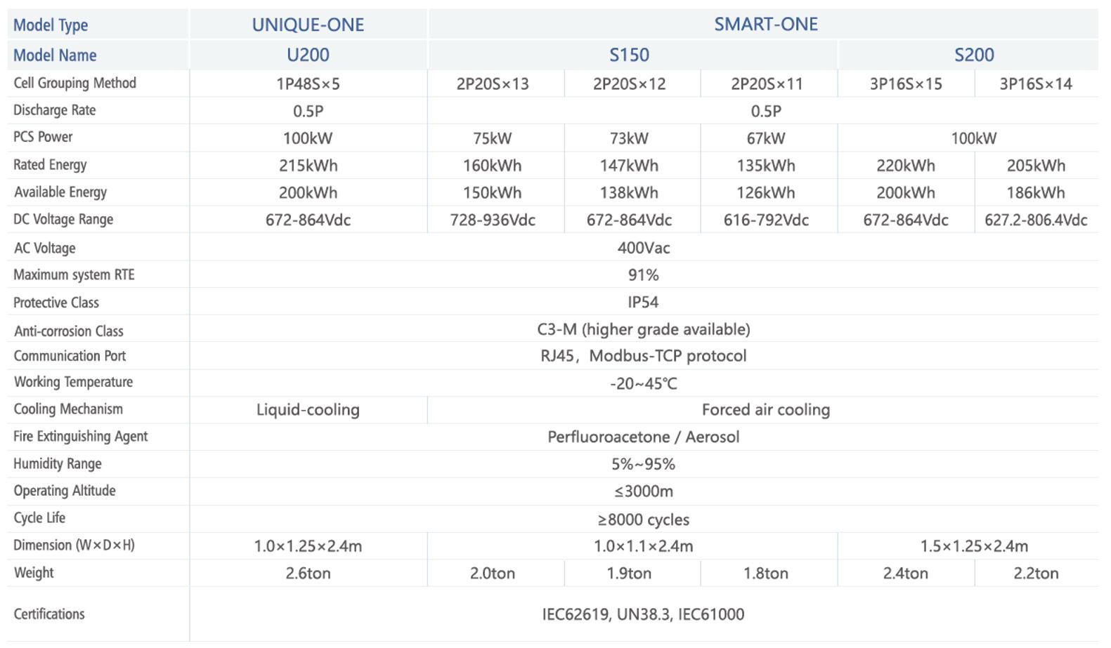 The products are divided into two types: SMART-ONE and UNIQUE-ONE. The SMART-ONE product is easy to operate and maintain and can be flexibly configured in capacity; the UNIQUE-ONE product is more compact and has a high energy density.